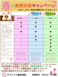 フィラリア予防薬を処方する前に採血によるフィラリア抗原検査が必要になるのですが、この機会に一緒に健康診断を推薦しています。
